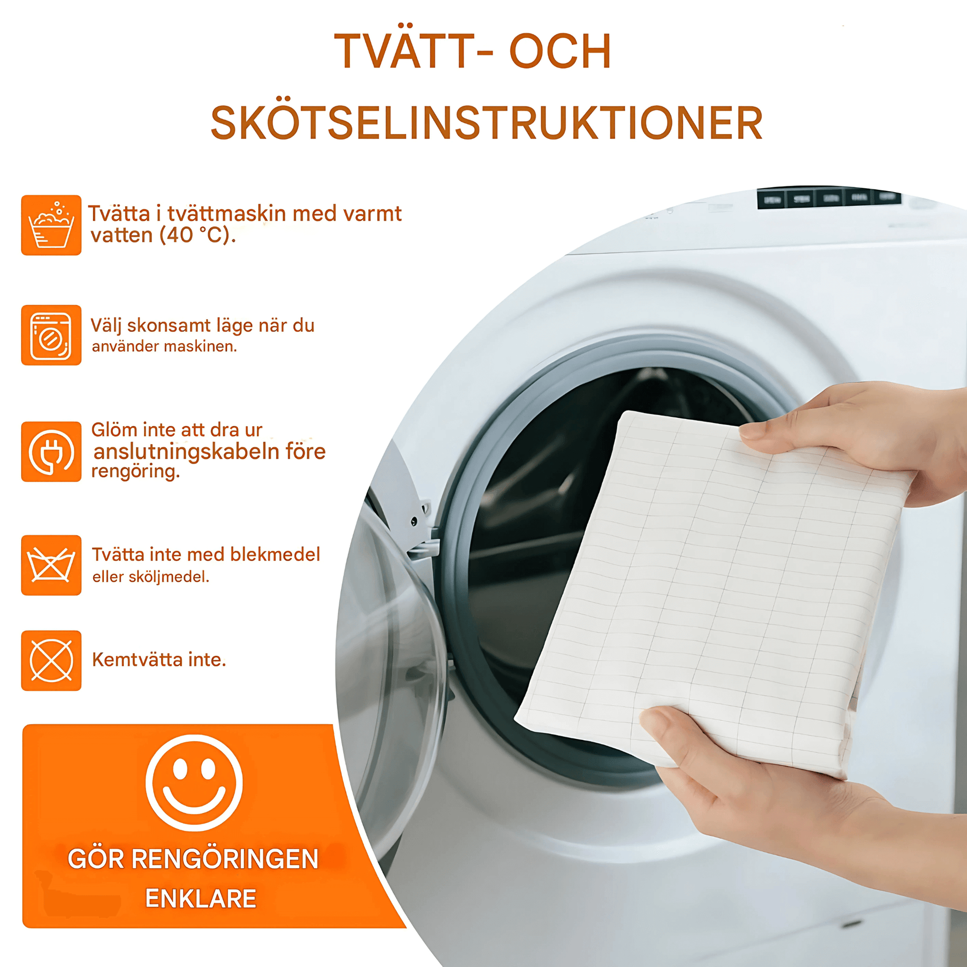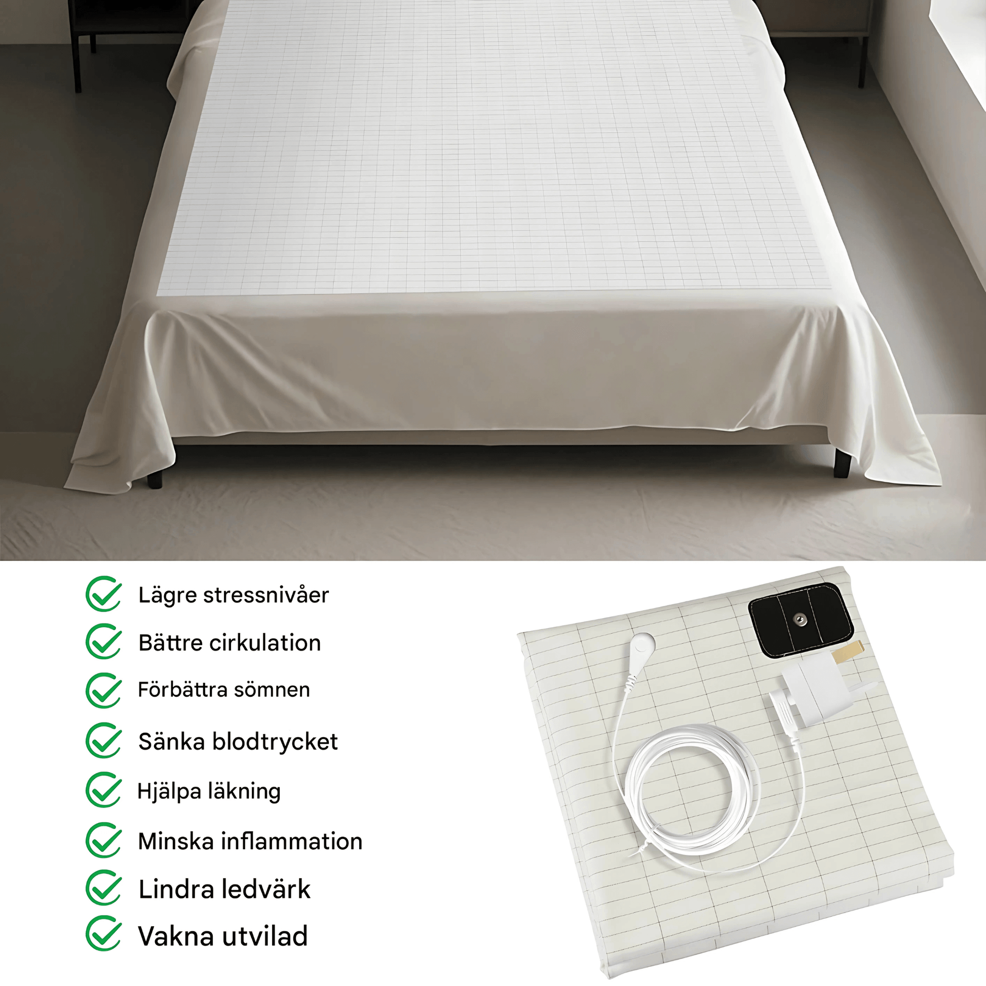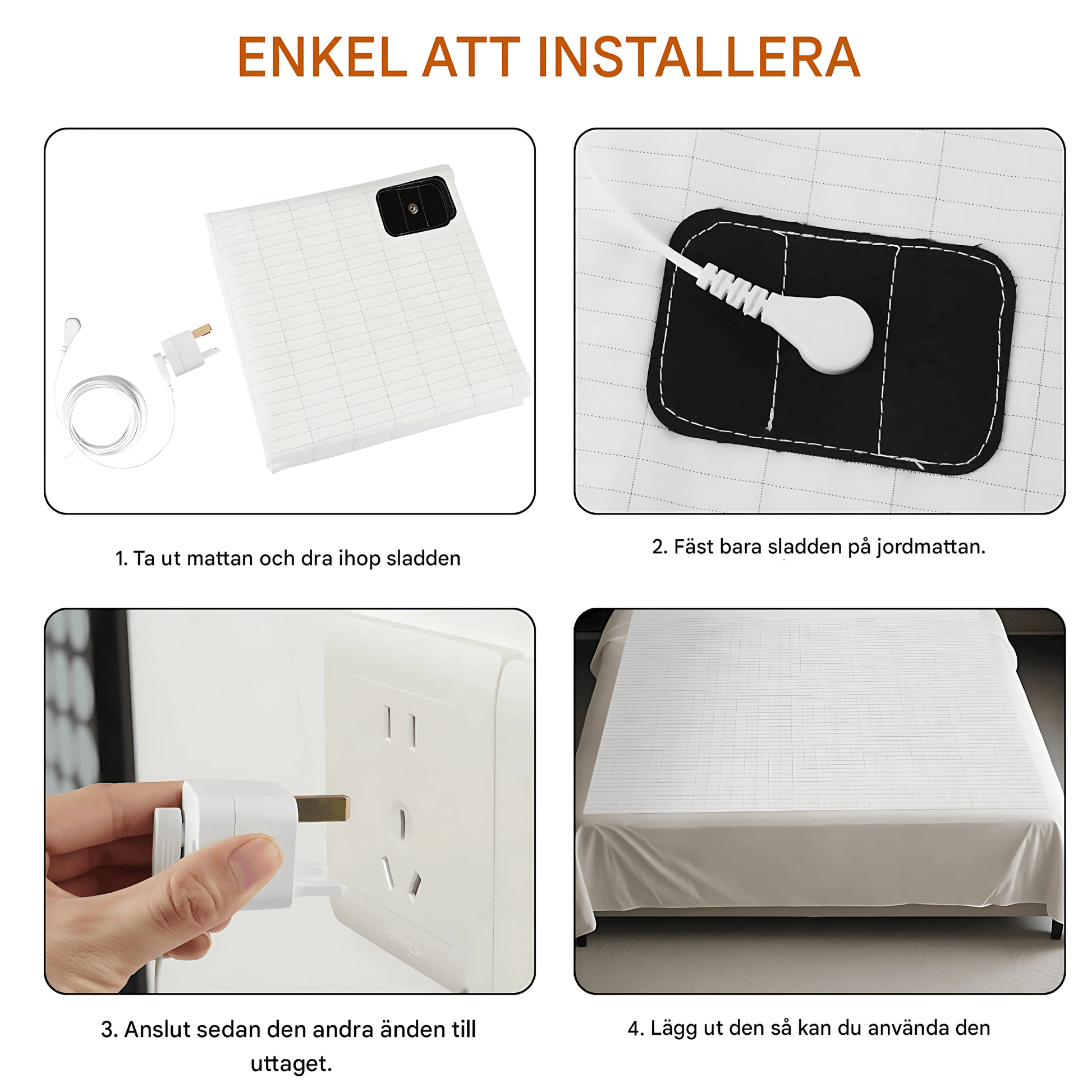 Inkluderar jordkabel som enkelt ansluts till ett jorduttag. Lakanet kan läggas ut direkt på sängen och användas som ett vanligt lakan, vilket gör det smidigt och praktiskt.